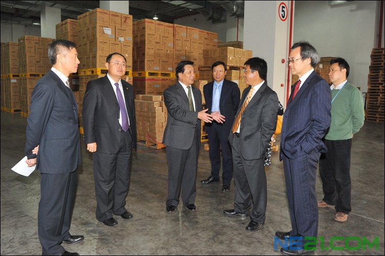 簽約儀式結束后,胡政副總裁一行考察了新落成的六號倉,并到倉庫頂層俯瞰整個園區,仔細詢問了六號倉建筑成本及有關技術參數,對六號倉庫外觀,質量及園區這兩年來的變化給予了充分肯定。