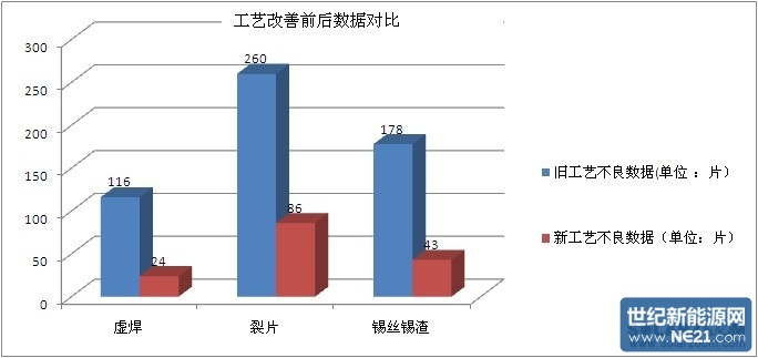目前國內大多數廠家主要使用手工焊接方法,手工焊接導致焊接不良的因素眾多。為提高太陽能組件的成品質量,本文給出了防止焊接不良的改善方法。